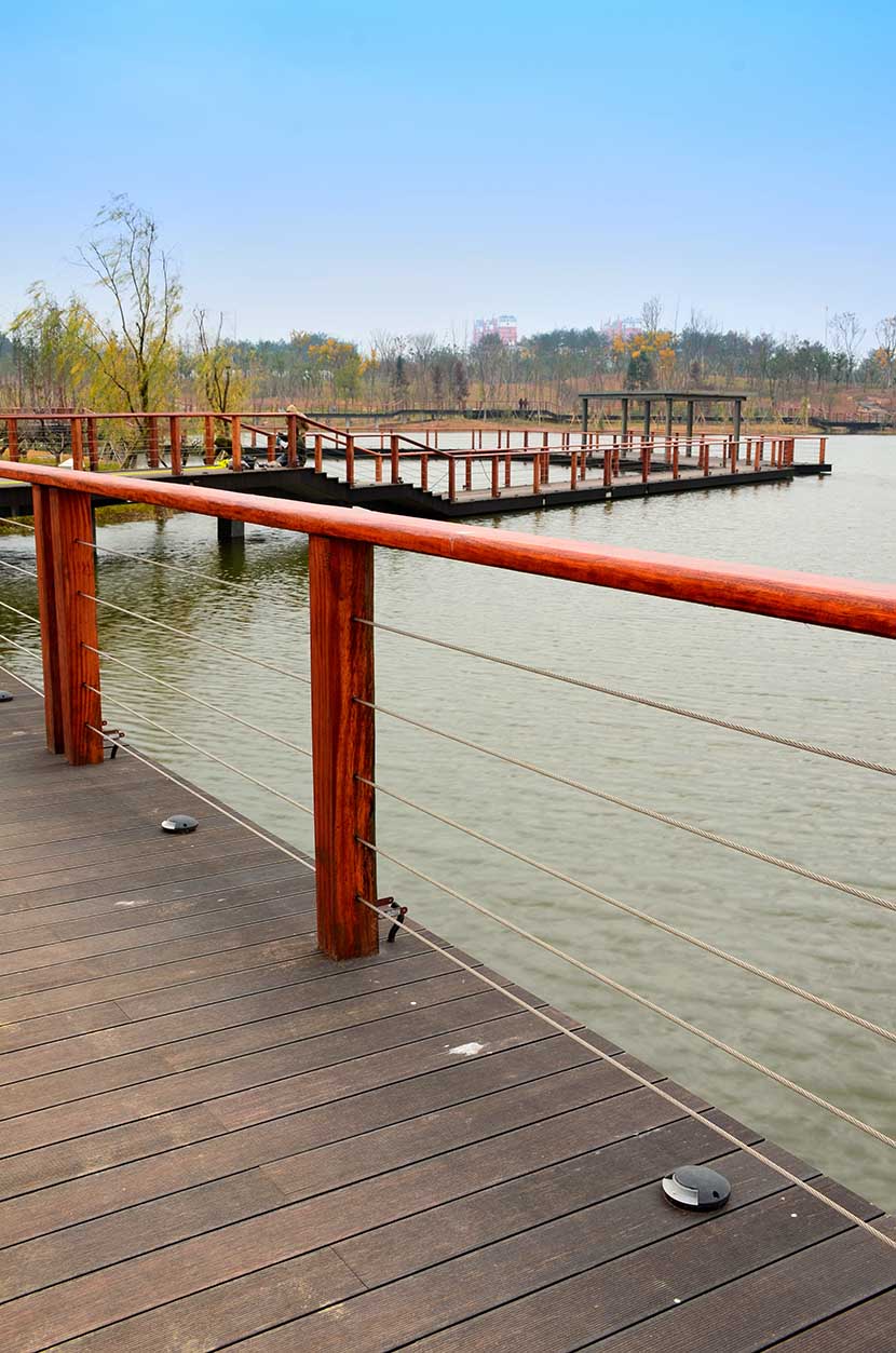 金獅湖公園位于浙江金華市北部的浦江縣,面積1265畝(水域面積368畝),總投資48億元。項(xiàng)目規(guī)劃為一環(huán)(金獅湖慢行游憩環(huán))、三片(人文體驗(yàn)景觀風(fēng)貌片、動(dòng)感都市景觀風(fēng)貌片、自然生態(tài)景觀風(fēng)貌片)及五區(qū)(工業(yè)遺存展示區(qū)、書(shū)香文創(chuàng)休閑區(qū)、康體活動(dòng)休閑區(qū)、濕地田園游覽區(qū)、濱湖廣場(chǎng)活力區(qū))。公園環(huán)湖景觀步道全部使用桃花江戶外防腐竹地板,打造金華的“小西湖”。